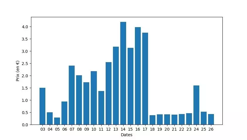 print( '{} : {} Wh - {:1.2f} €'.format(dates[i-1] , conso[i-1] , p) )